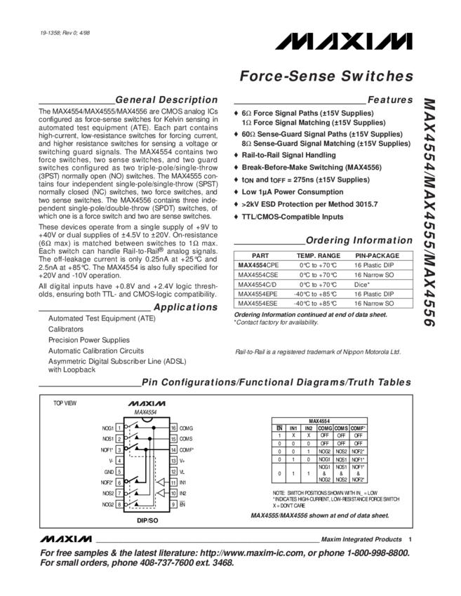 MAX4556 5PST Force-Sense Switch