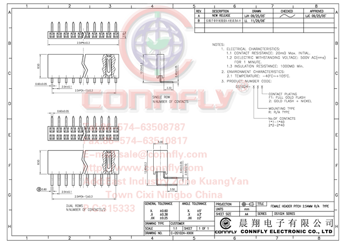 Connfly DS1024-2*5R2 Listwa kołkowa, żeńska, standardowa 1 szt.