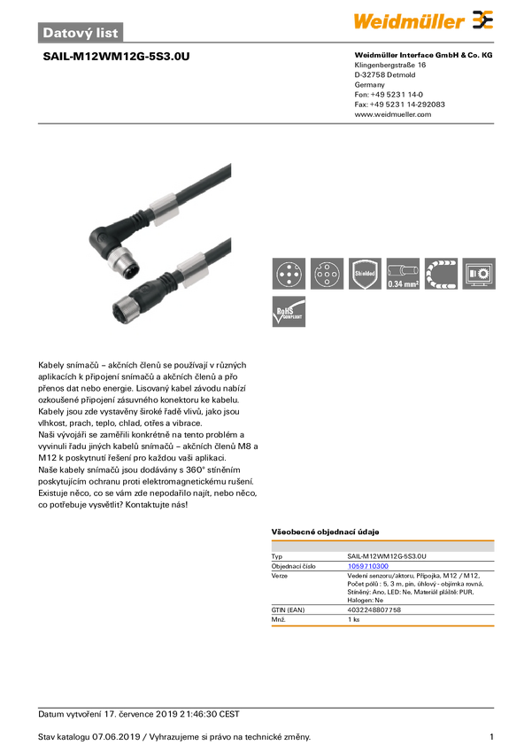 Przewód połączeniowy Weidmüller SAIL-M12WM12G-5S3.0Q 1059710300 1 szt.