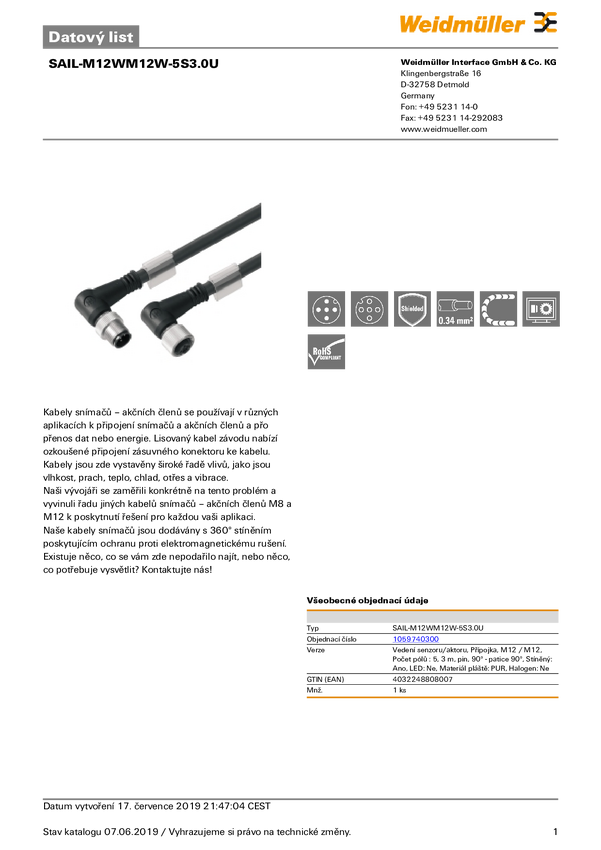 Przewód połączeniowy Weidmüller SAIL-M12WM12W-5S3.0Q 1059740300 1 szt.