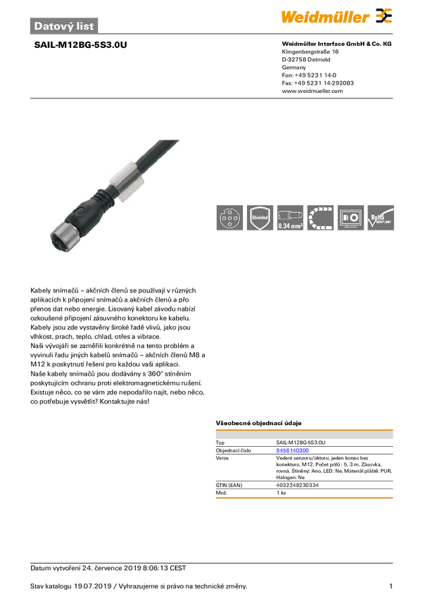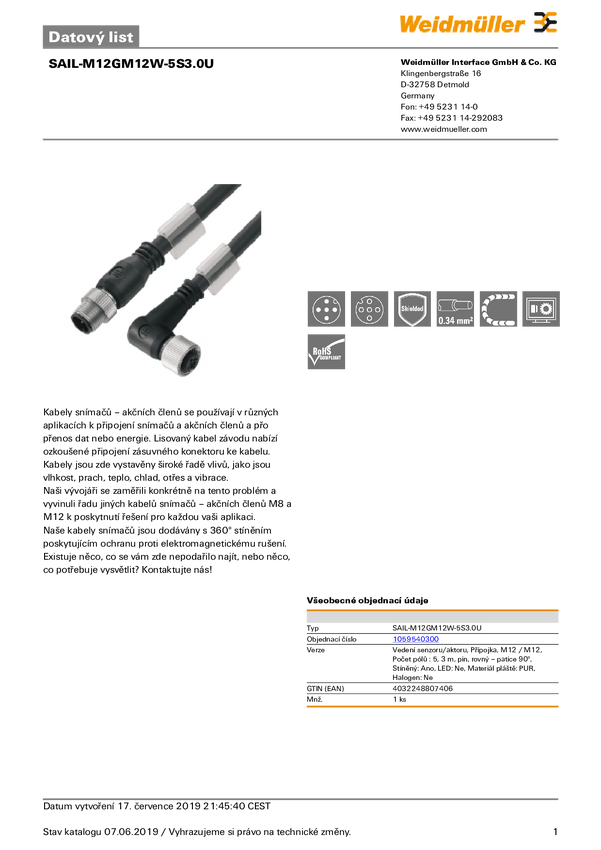 Przewód połączeniowy Weidmüller SAIL-M12GM12W-5S3.0Q 1059540300 1 szt.