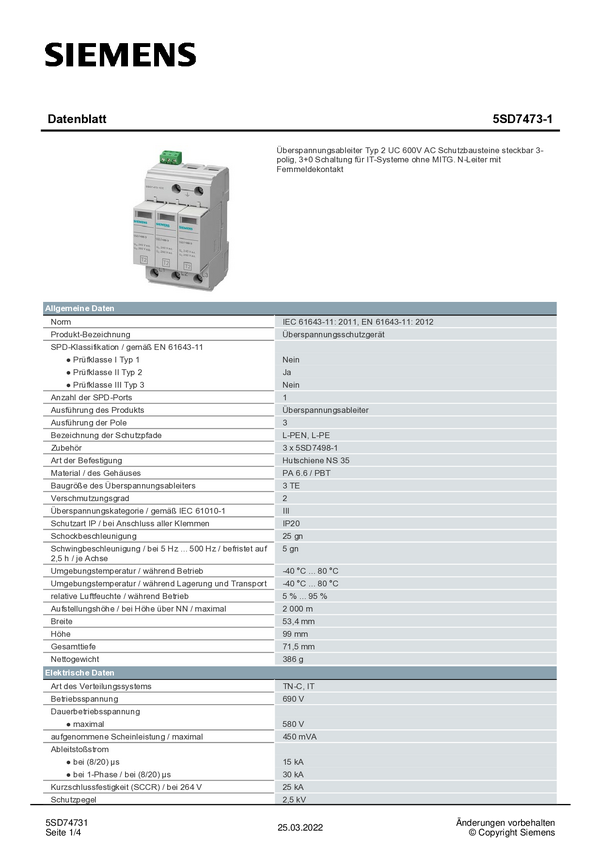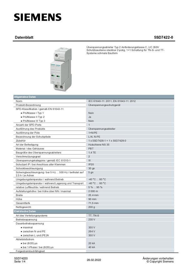 Ogranicznik przepięć Siemens 5SD74143 1 szt.