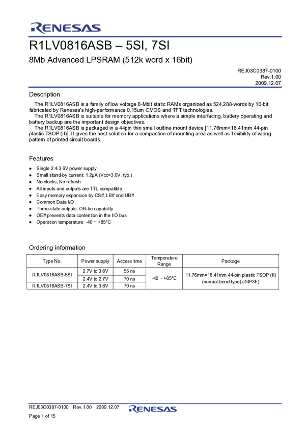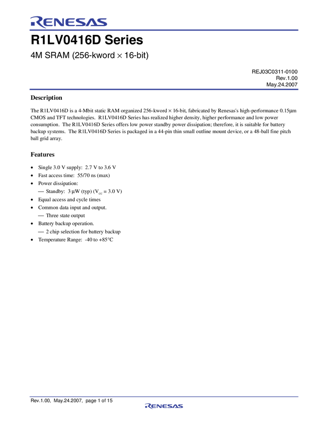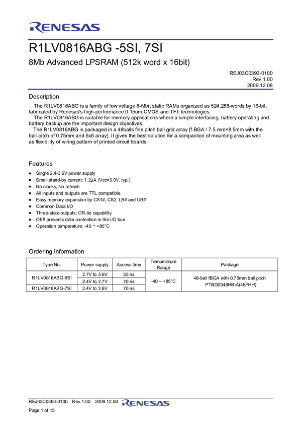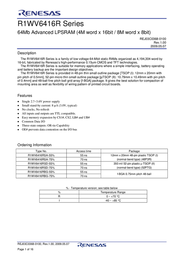 Wide Temperature Range Version 16 M SRAM (1-Mword × 16-bit)