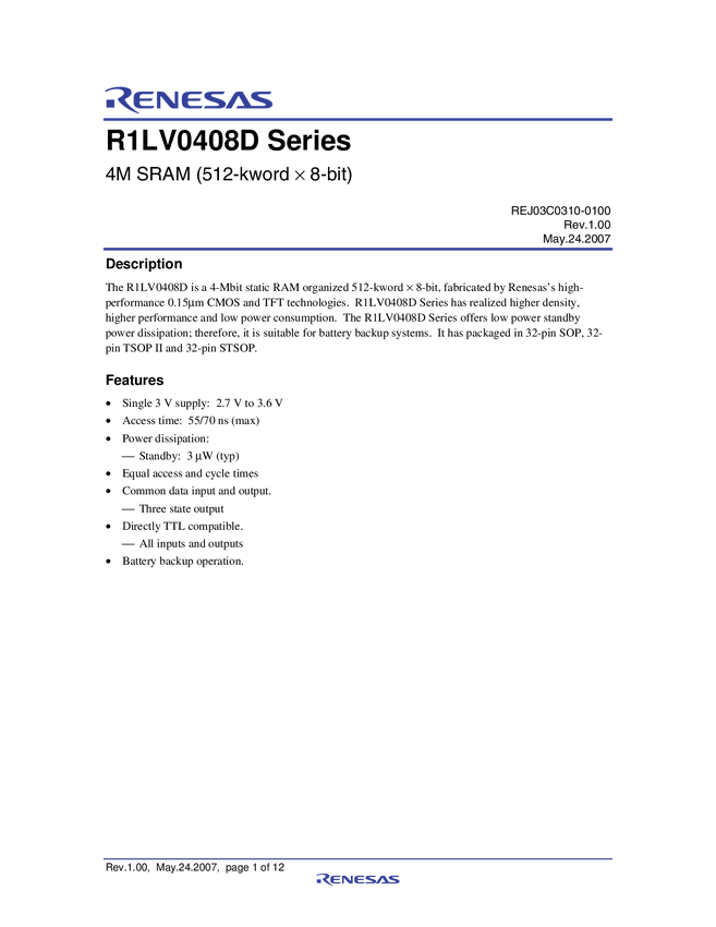 4Mb Advanced LPSRAM (512-kword × 8-bit)