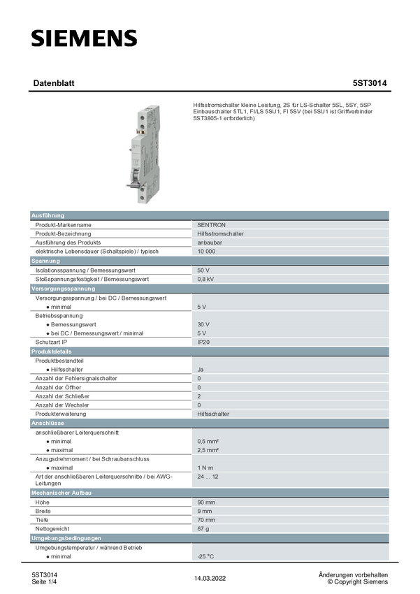 Siemens 5ST3014 5ST3014 Przełącznik pomocniczy