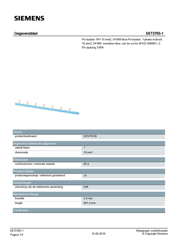 Szyna zbiorcza Siemens 5ST37651, 63 A