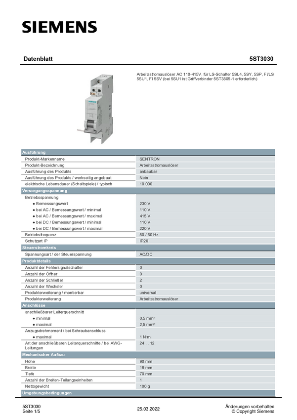 Przełącznik pomocniczy Siemens 5ST3030 5ST3030