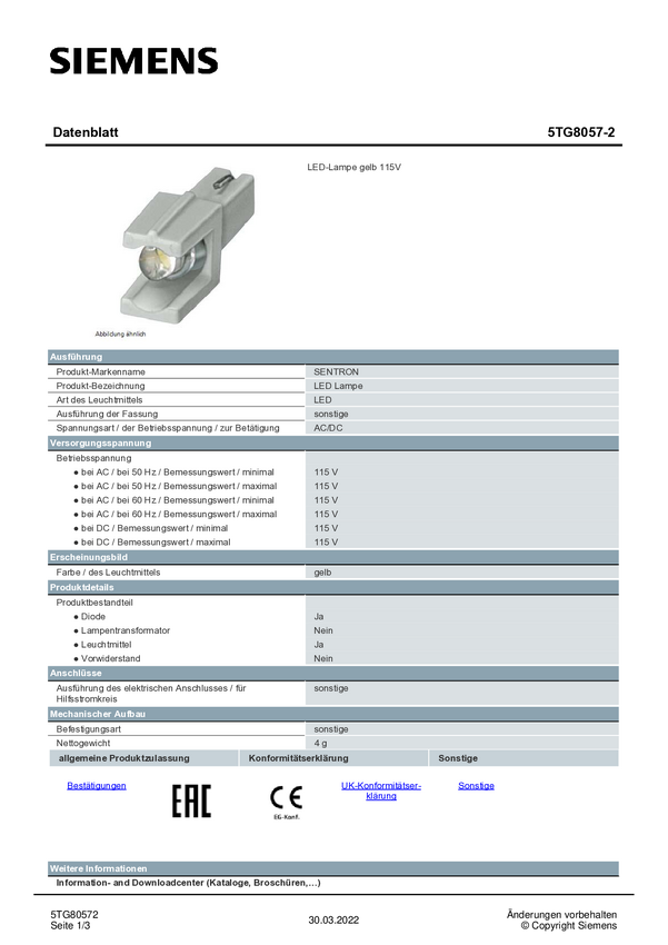 Siemens 5TG8057-2 Dioda LED żółty 115 V DC/AC 5 szt.