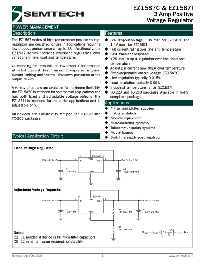 LDO Regulator Pos 2.5V 3A 3-Pin TO-263 T/R