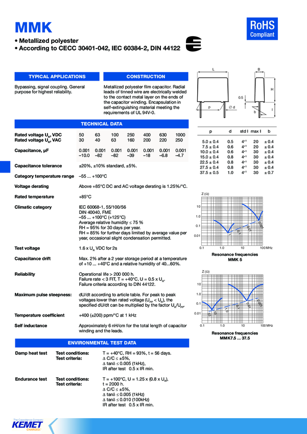 Cap Film 0.047uF 100V PPS 10% (7.2 X 3.5 X 8mm) Radial 5mm 150°C T/R