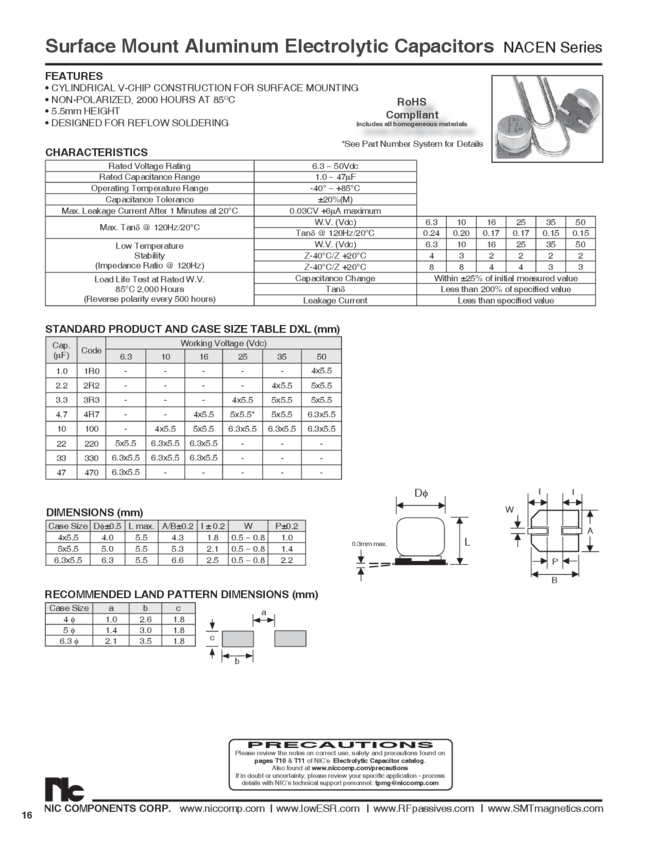 Cap Aluminum 56uF 10V 20% (5 X 5.5mm) Cylindrical 2000 hr T/R