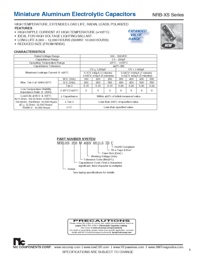 Cap Aluminum 1.5uF 400V 20% (8 X 11.5mm) Radial Cylindrical 3.5mm 90mA 8000 hr 105°C Bulk