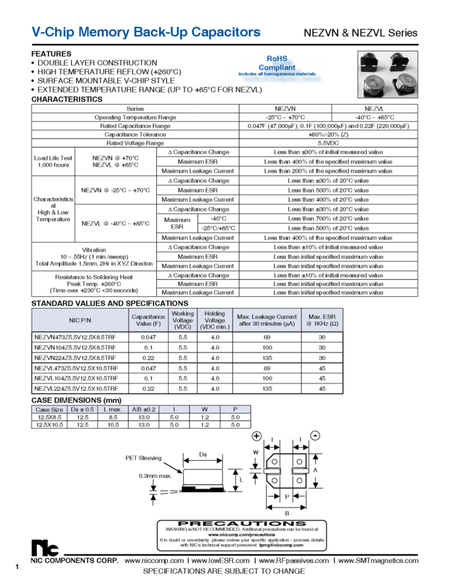 Cap 0.22F 5.5V -20 to 80% 1000 hr (12.5 X 10.5mm) Cylindrical 85°C T/R