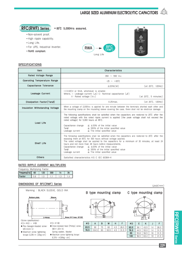 CERFC 10000uF-450V /89x170/ Kondensator elektrolityczny śrub., 5000h
