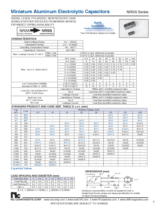 CEPXB 1000uF-16V /10x20/ Kondensator elektrolityczny 125C, LI, 5000h, RM5,0
