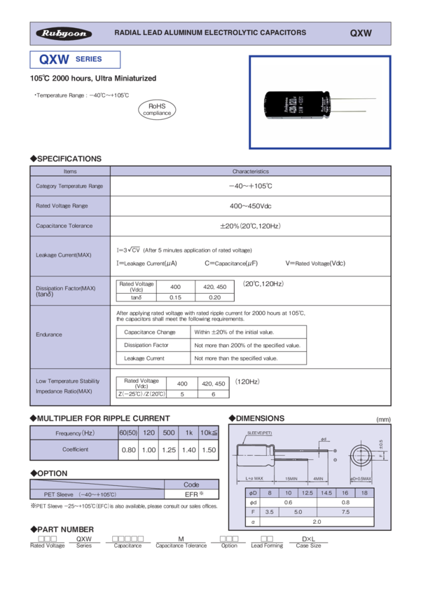 Cap Aluminum 82uF 450V 20% (18 X 30mm) Radial Aluminum Cylindrical Can 7.5mm 730mA 12000 hr 105°C Bulk