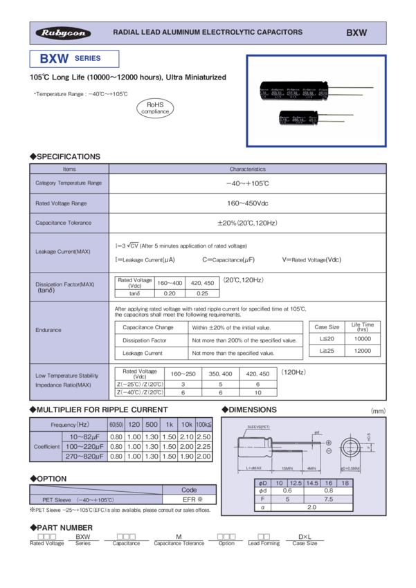 CENXB 150uF-50V /10x12,5/ Kondensator elektrolityczny 105C, LI, 4000h, RM5,0 taśm