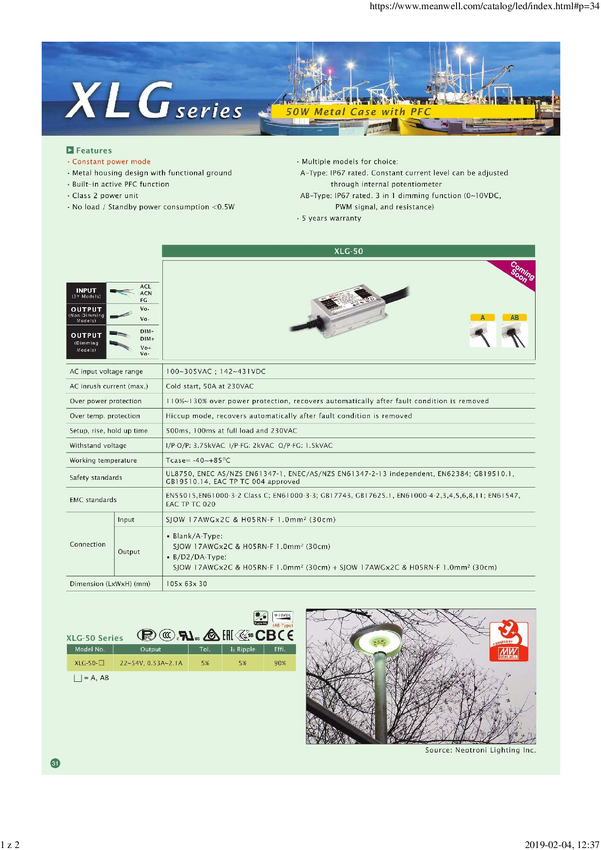 Zasilacz do oświetlenia LED 24V 6,25A 150W MEAN WELL XLG-150-24-A