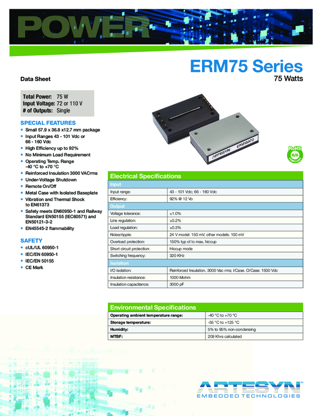 Module DC-DC 1-OUT 12V 6.25A 75W 8-Pin