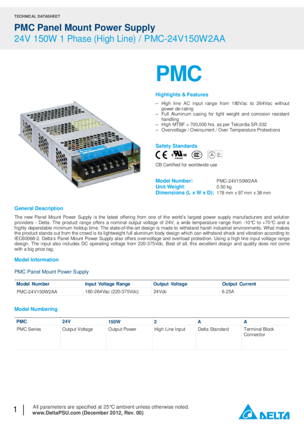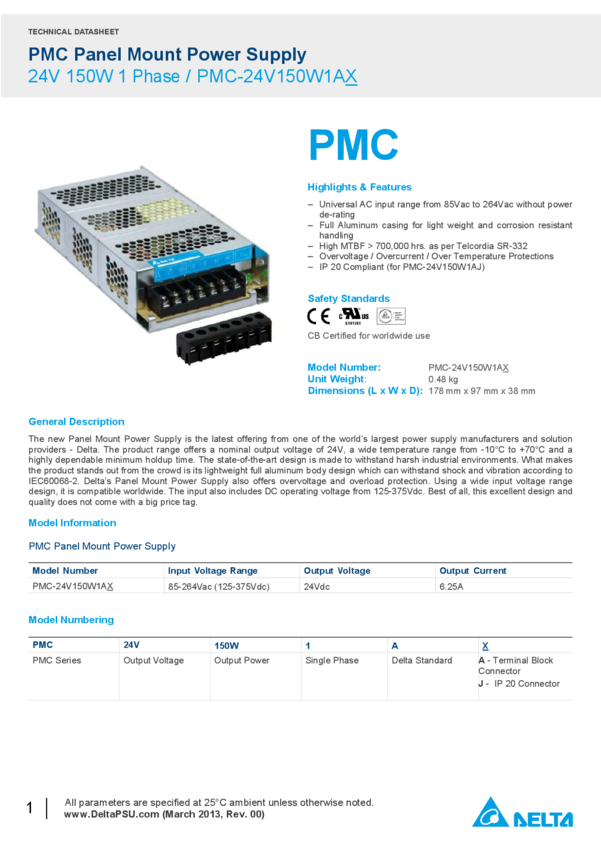 AC/DC Power Supply Single-OUT 24V 6.25A 150W
