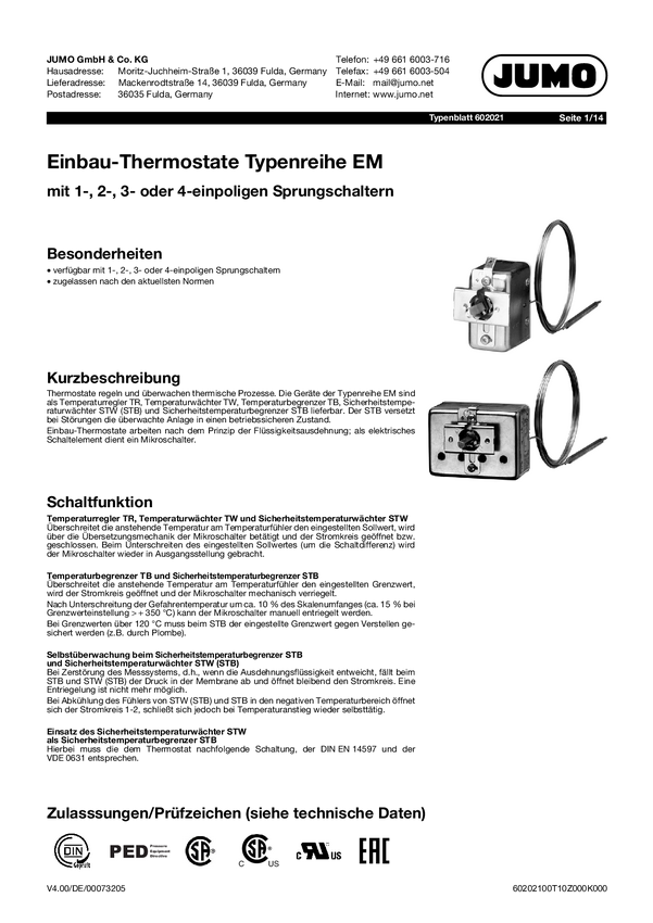 Ogranicznik temperatury Jumo 60002085 20 do 500 °C
