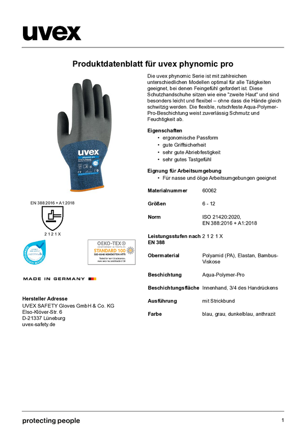 uvex phynomic pro 6006209 Poliamid Rękawice robocze Rozmiar rękawic: 9 EN 388 1 szt.
