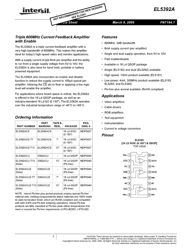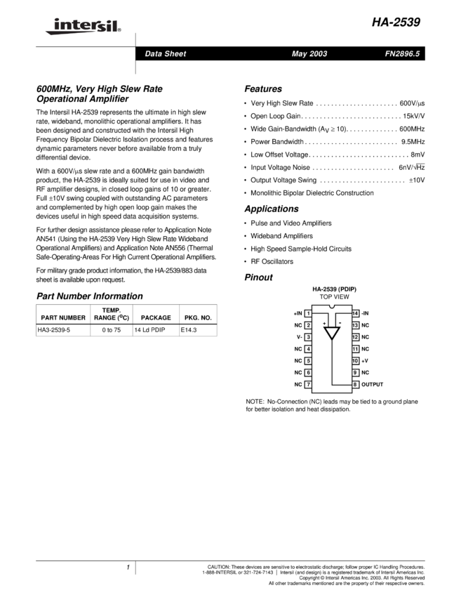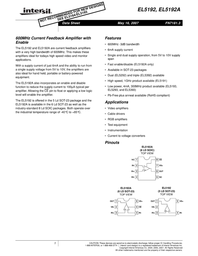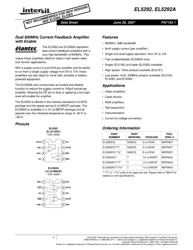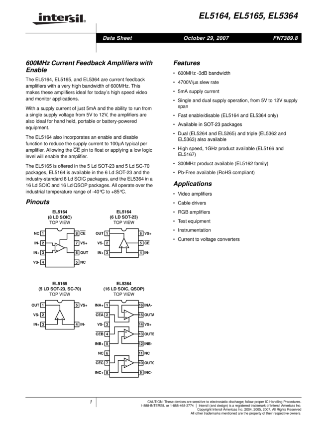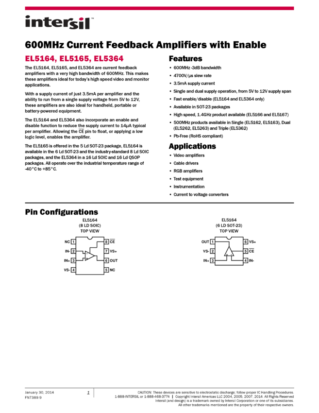 600MHz, Low Noise, High Precision Fully Differential Input/Output Amplifier/Driver