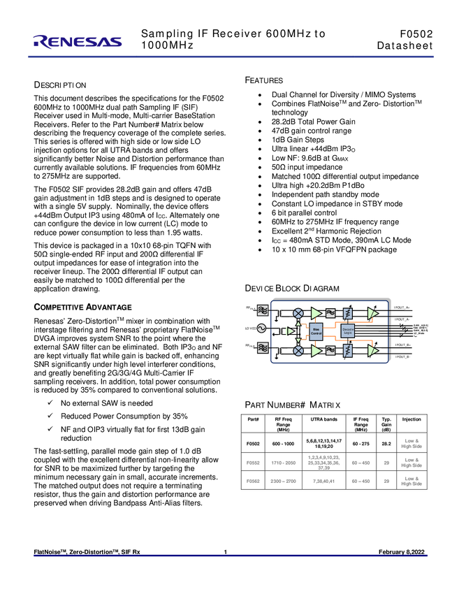 Dual Path RF to IF Mixer - 600MHz to 1000MHz