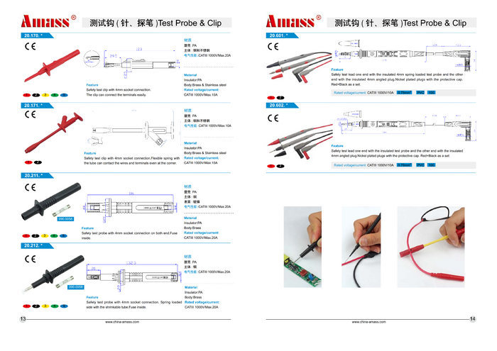 Przewody pomiarowe; 20.604.120; do miernika; 2mm; kątowy; bezpieczny; 1,2m; PVC; 0,75mm2; 10A; 1000V; Amass; RoHS
