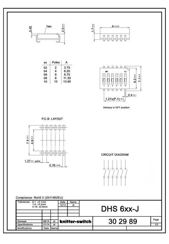 Switch Slide OFF ON SPST Recessed Slide 0.1A 50V 1000Cycle Solder Lug SMD T/R