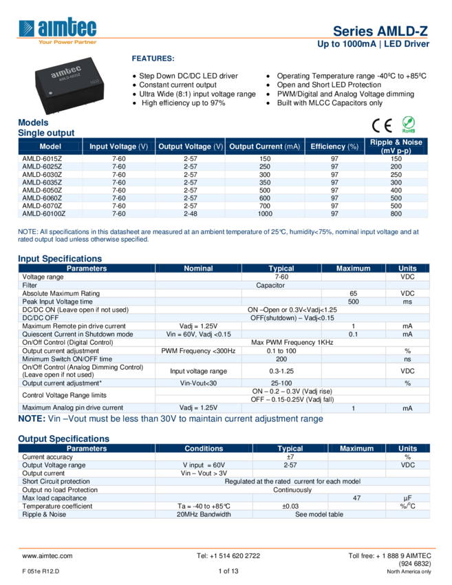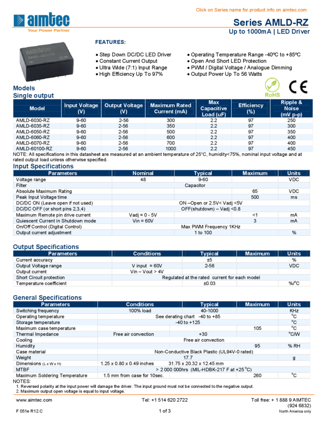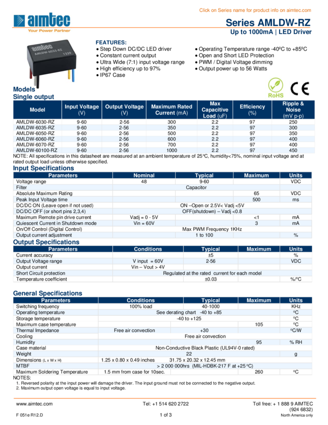 LED DRVR Module 1-CH PWM IP67 56V 0.3A