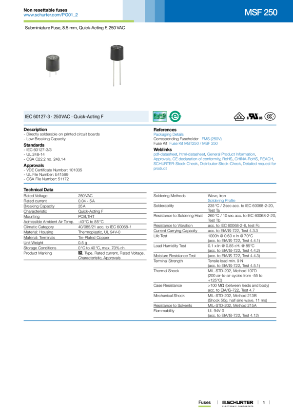 Fuse Subminiature 1.6A 250V Fast 2-Pin Through Hole