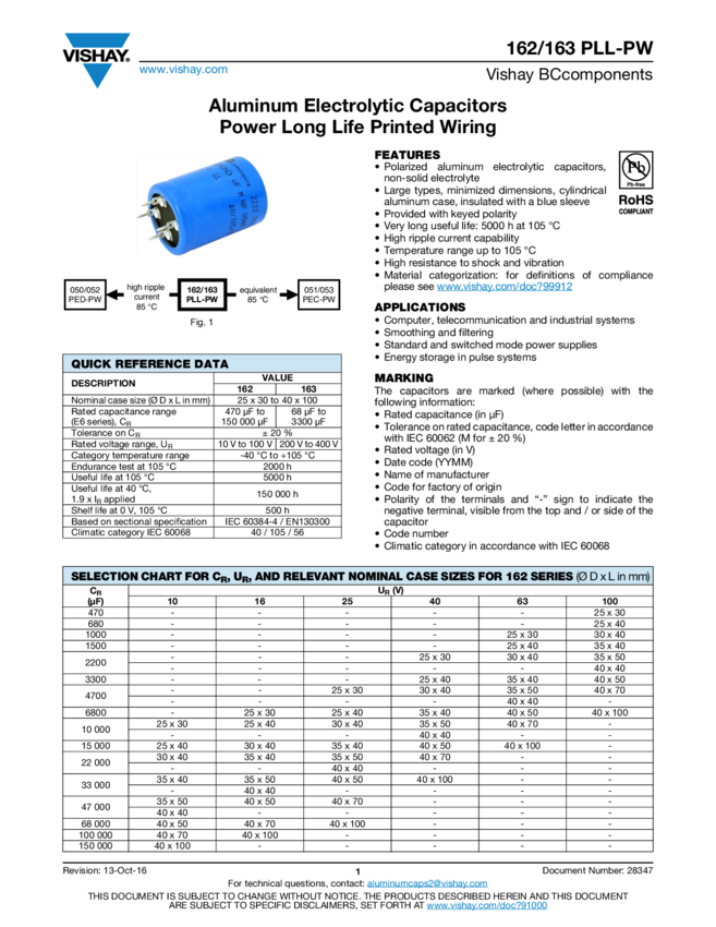 Cap Aluminum 33000uF 16V 20% (35 X 50mm) Solder Pin 0.028 Ohm 6080mA 5000h 105°C Bulk