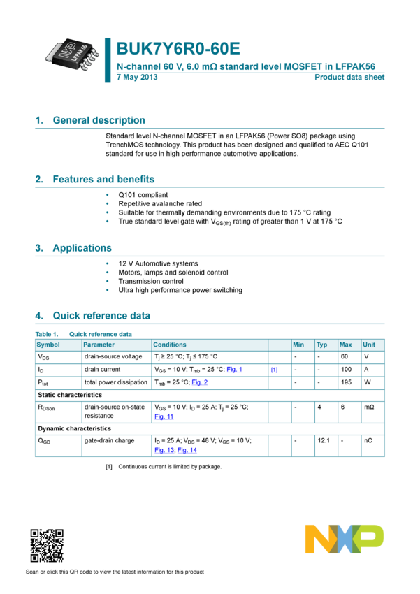 N-channel 60 V 3.0 mΩ standard level MOSFET in I2PAK.