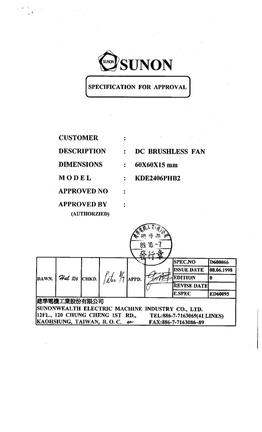 entylator 24V 60x15 łożysko magnetyczne VAPO; 42,8m3/h; 36,2 dBA