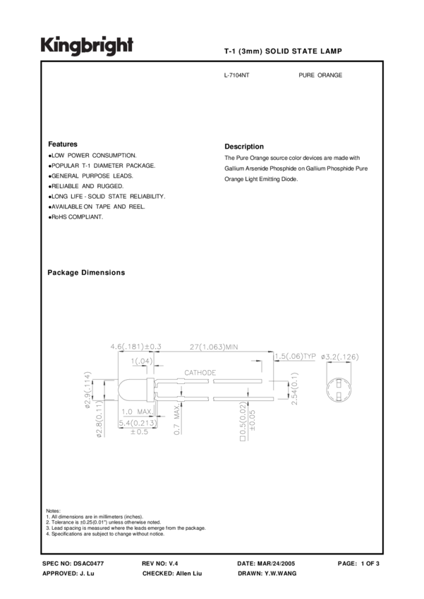 LED Uni-Color Orange 610nm Standard LED 2-Pin T-1 T/R