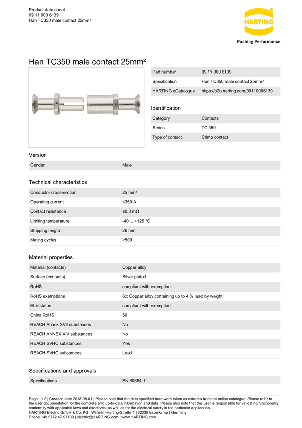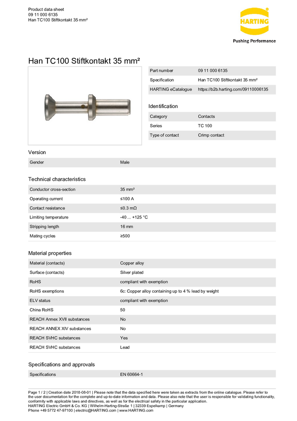 Styk męski Harting 09 11 000 6132, 1 szt.