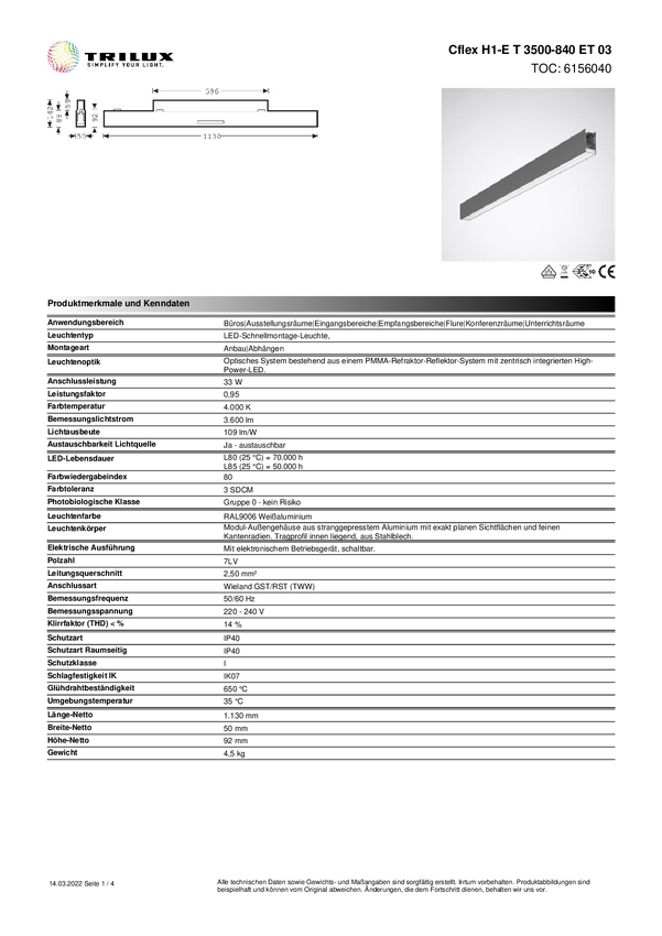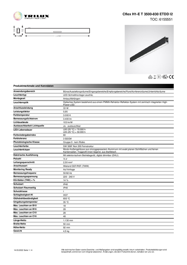 Trilux 6159151 Cflex H1 #6159151 System oświetlenia ciągłego LED 34 W LED biały 1 szt.