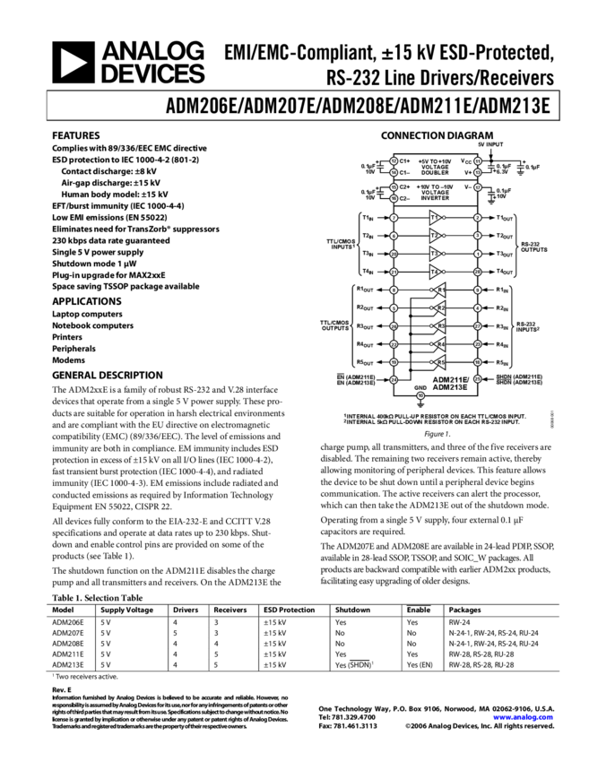 EMI/EMC Compliant, 615 kV ESD Protected, RS-232 Line Driver/Receiver in a 24-Pin SO Package