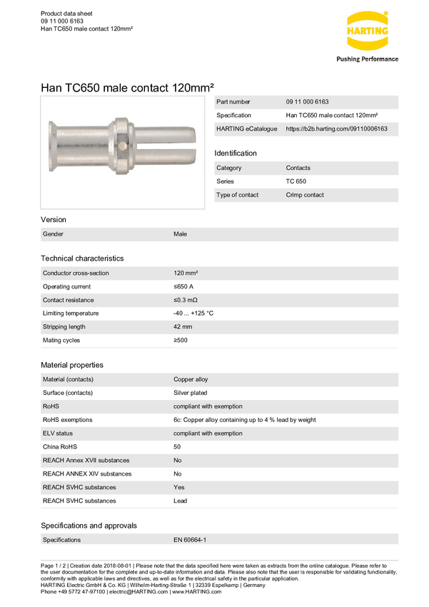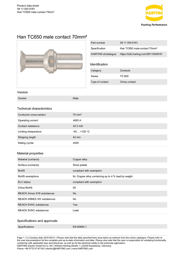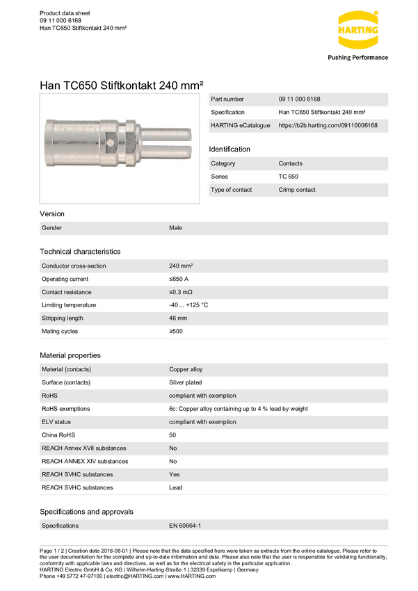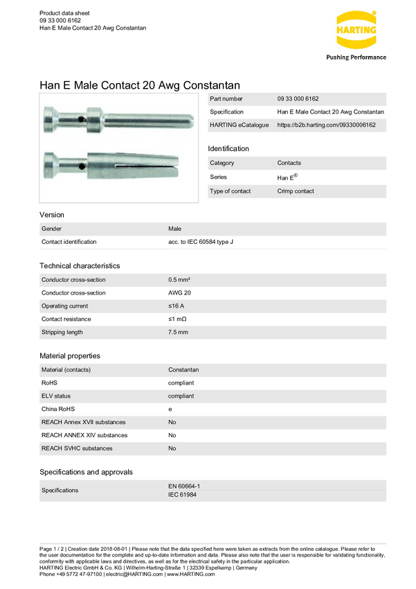 Styk męski Harting 09 11 000 6168, 1 szt.