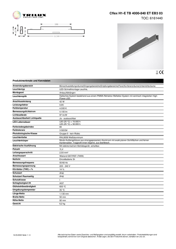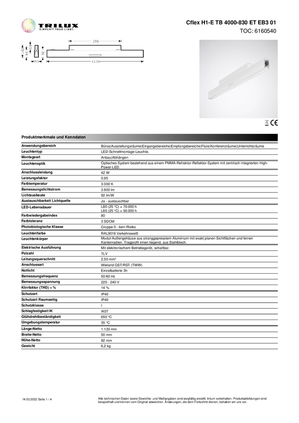 Trilux 6160051 Cflex H1 #6160051 System oświetlenia ciągłego LED 34 W LED biały 1 szt.