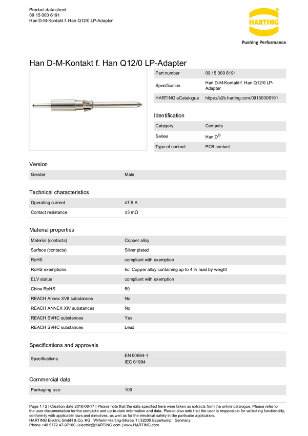 Złącze przemysłowe 09 15 000 6191 Harting Zawartość: 1 szt.
