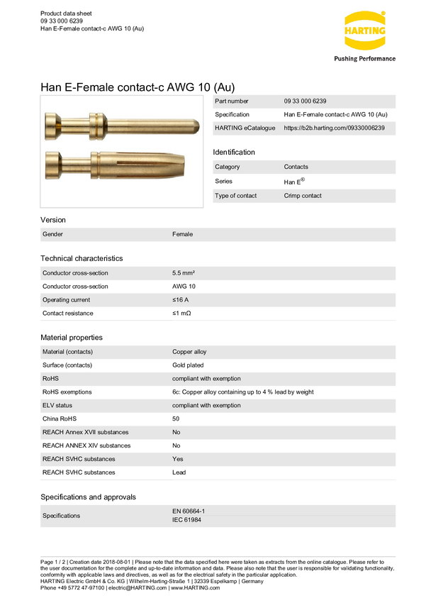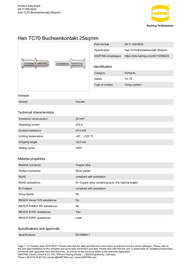 Styk żeński Harting 09 11 000 6233, 1 szt.