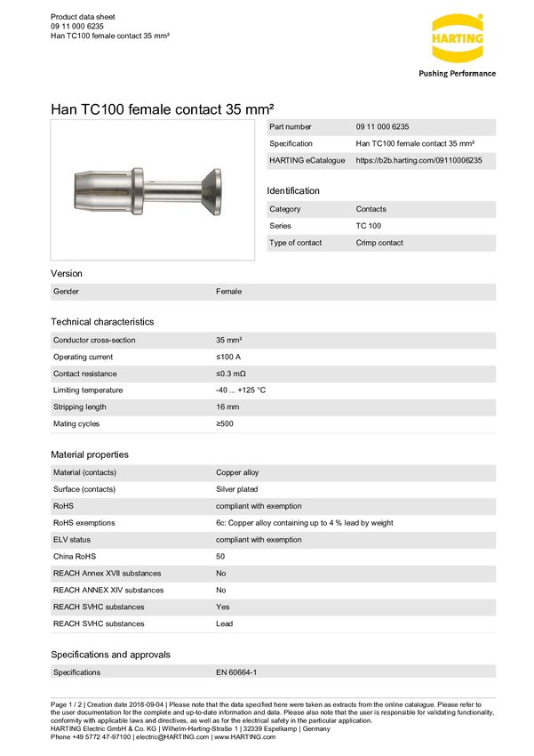 Styk żeński Harting 09 11 000 6235, 1 szt.