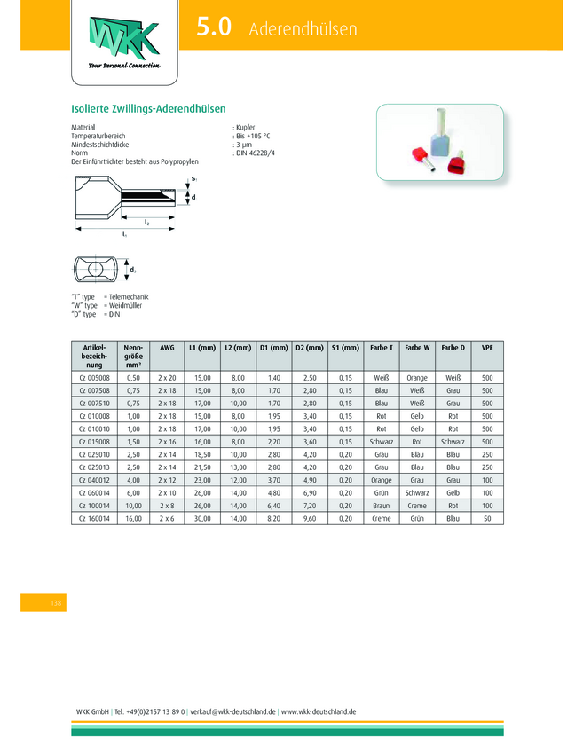 WKK 6239 Podwójna końcówka 0.5 mm² z częściową izolacją biały 500 szt.