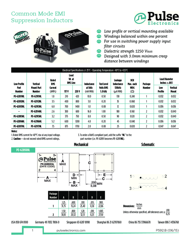 Ind Common Mode Toroid 8mH 1KHz 3.2A Pin