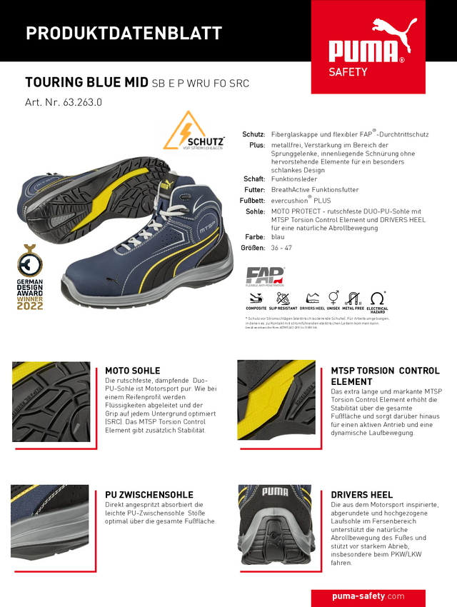 PUMA TOURING BLUE MID SB E P WRU FO SRC 632630300000041 Buty ochronne SB Rozmiar buta (EU): 41 niebieski 1 par(a)