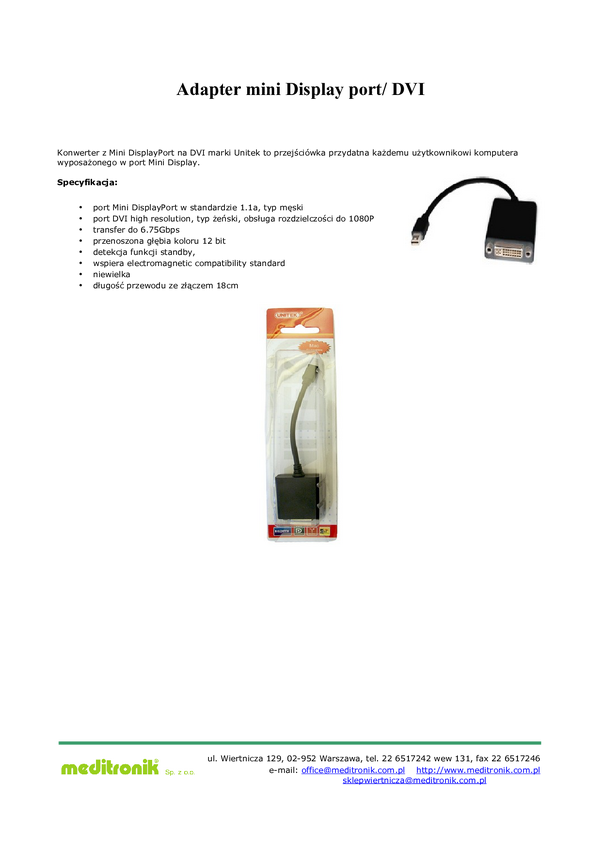 Unitek Y-6326WH Konwerter z Mini DisplayPort na DVI,