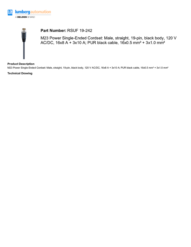 Lumberg Automation 63299 Złącze konfekcjonowane czujnika/aktuatora M23 złącze męskie proste 20.00 m Ilość pinów: 19 1 sz