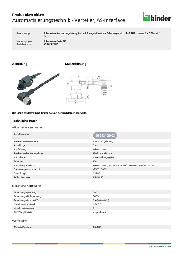 binder 79 6424 10 02-20 Złącze konfekcjonowane czujnika/aktuatora 79 6424 10 02, piny: 2, 1 m, 1 szt.